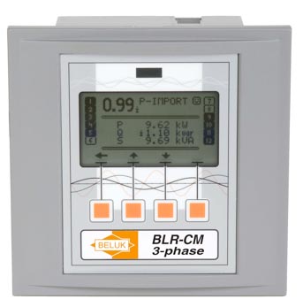 Microprocessor controlled power factor controlled with 3-phase measurement system and display of measurement values